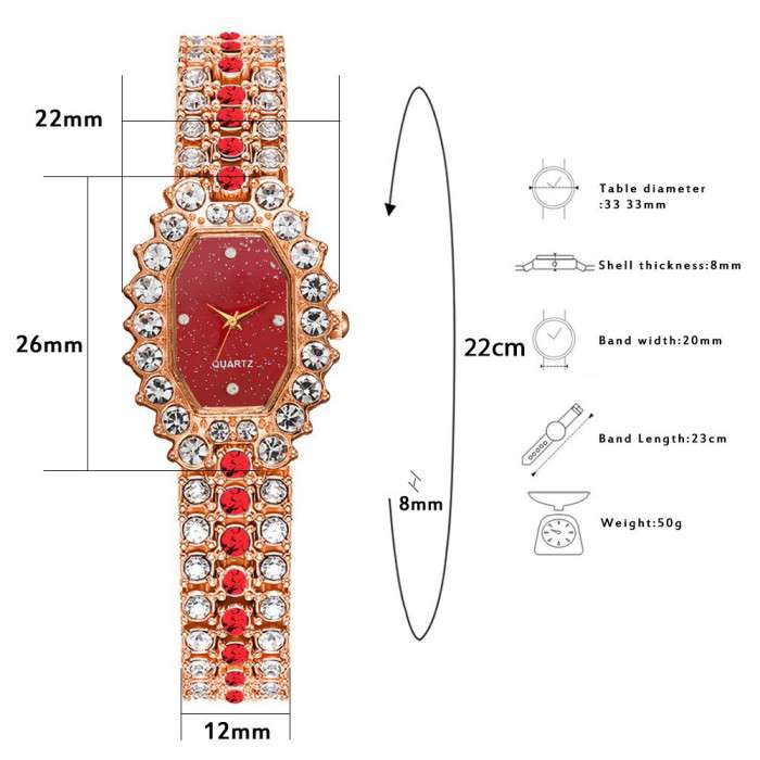 Fashion Simple Women Watches With Bracelet Set Quartz Wristwatch Shiny Stone Red Colour Fashion Simple Women Watches With Bracelet Set Quartz Wristwatch Shiny Stone Red Colour